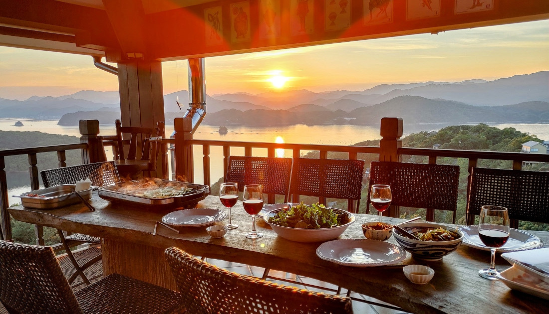 テラスからは、日々異なる色彩で海に沈む夕日を一望でき、心癒されるひとときを演出します。