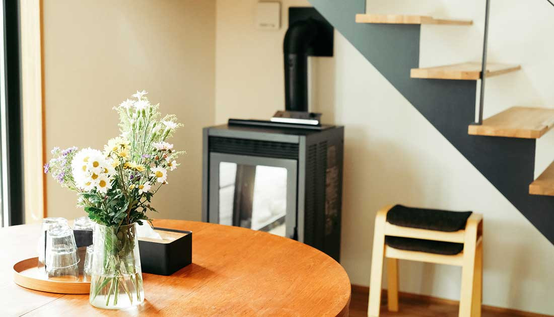 各棟には北欧風の露天薪風呂や薪ストーブを設置。