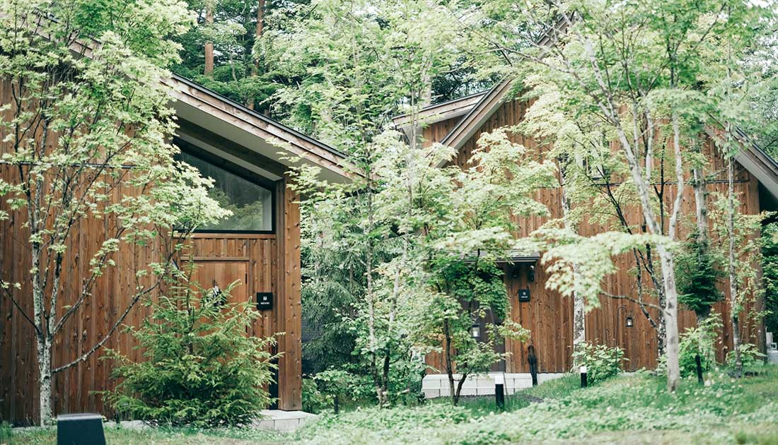 全4棟のヴィラは、それぞれに広々とした専用苔庭とウッドデッキを備え、まるで自分だけの別荘のようなプライベート空間を実現。