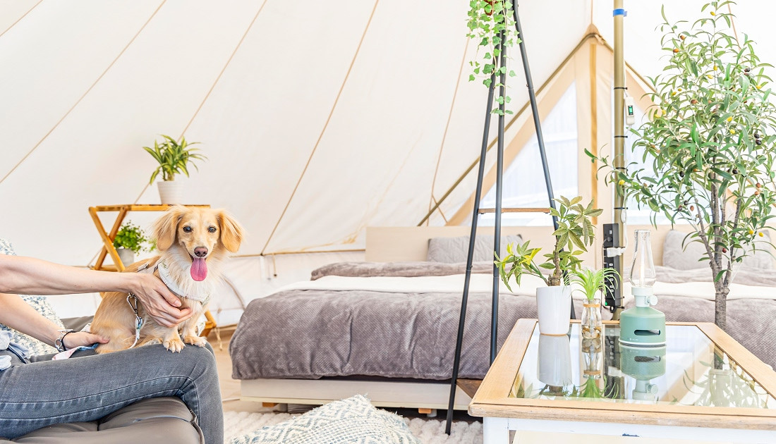 グランピングサイトやトレーラーハウスは、愛犬と一緒に宿泊可能。